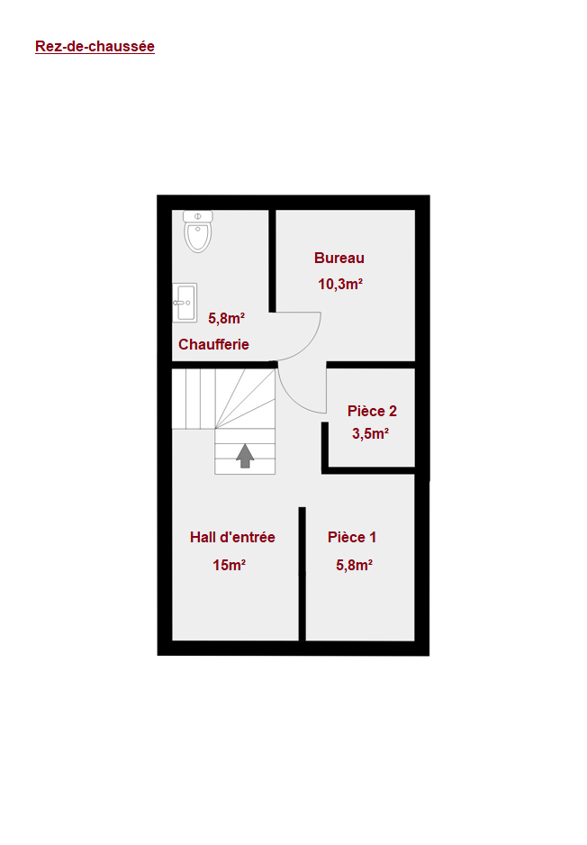 RDC: Accueil (+-15m²), 2 bureaux ( +- 2x10m²), Sanitaires (+-6m²)